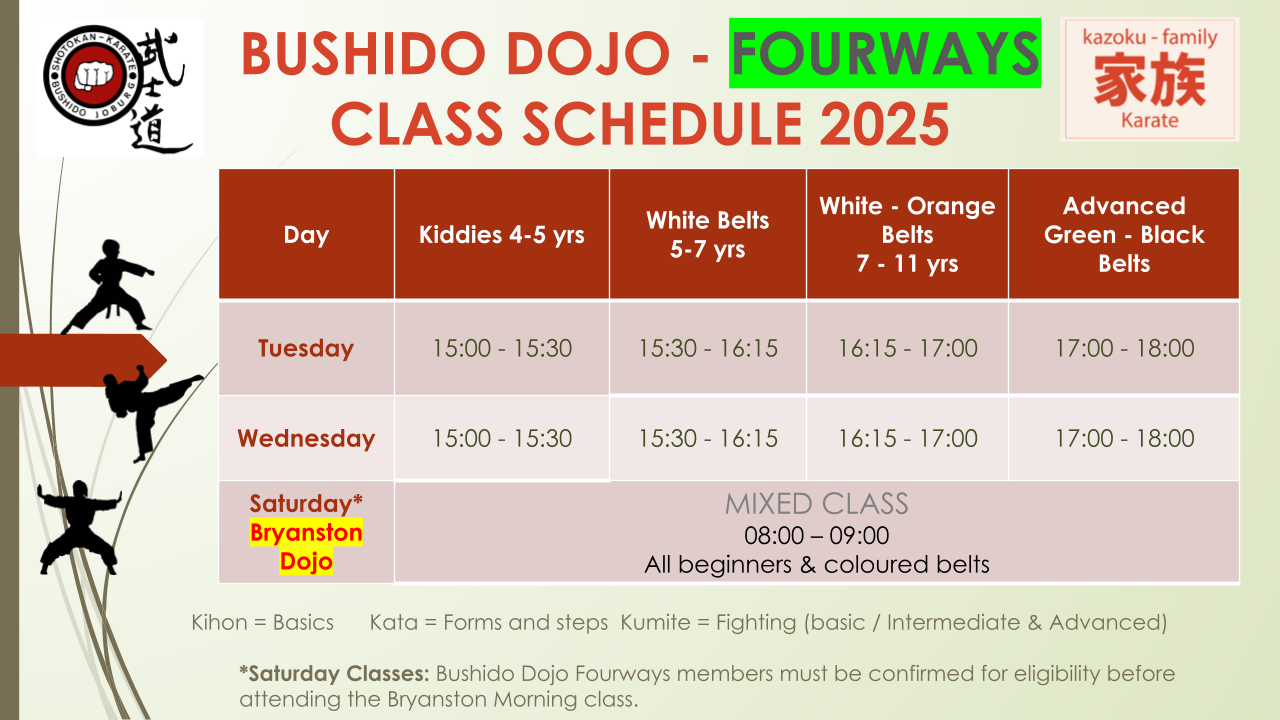 Bushido-fourways DOJO Hours