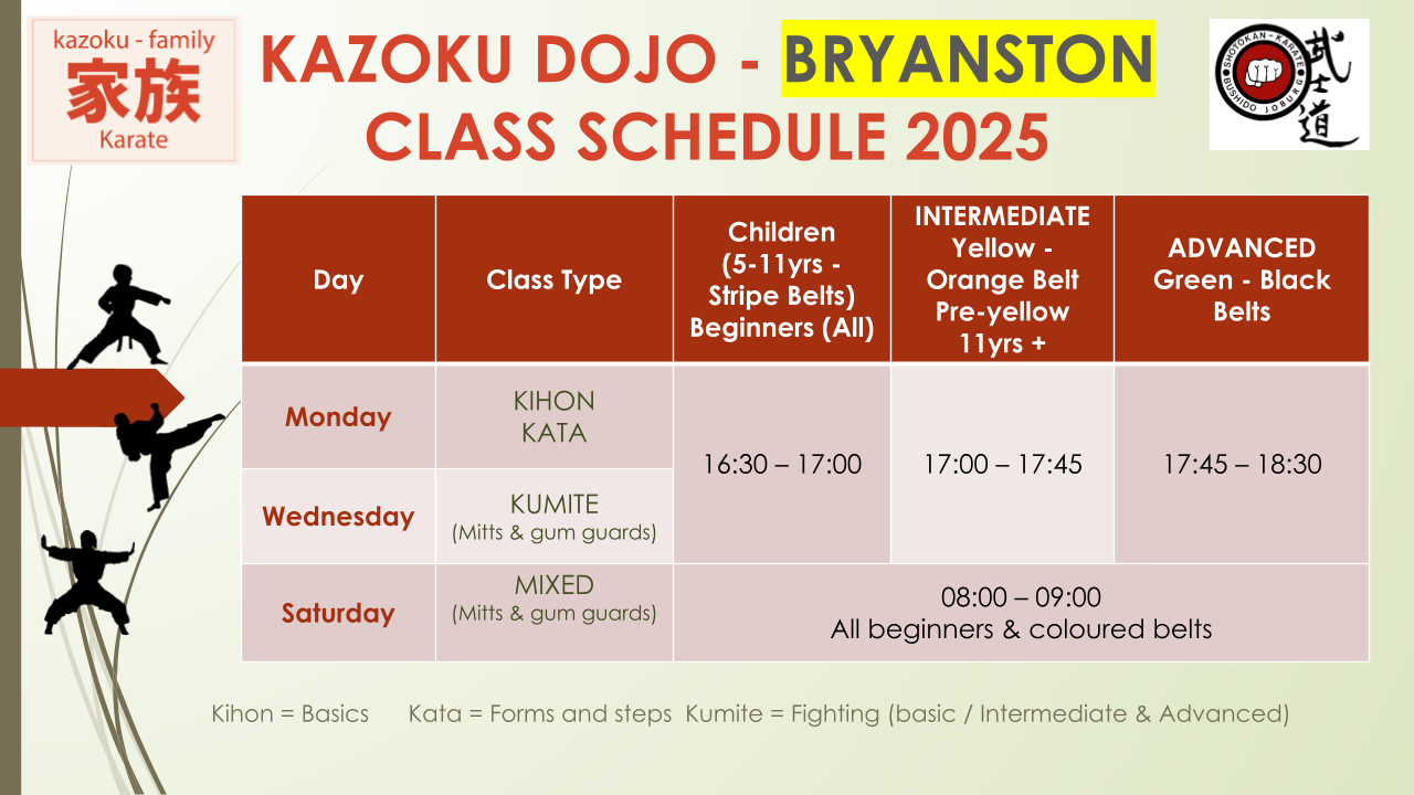 Kazoku-Bryanston DOJO Hours